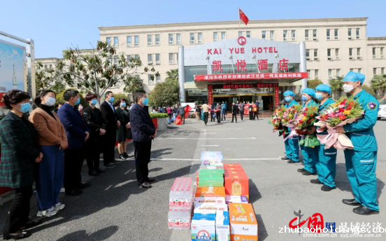 漯河市中心医院院长王海蛟,党委书记王向良,副院长付秀虹、杨秀慧,纪委书记张丰月带领办公室、医务科、护理部工作人员来到队员入住酒店,为他们献上鲜花和慰问品,欢迎英雄归来。